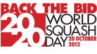 World Squash Day 2012 has been themed to support the 2020 Bid. The centrepiece of activities will be the 2020 Challenge, with clubs fielding two teams of 20 players or more, with team members playing against their opposite number in one game up to 20 points.