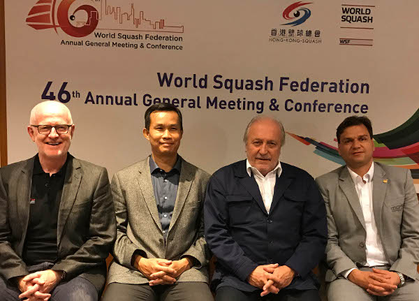Also elected at the meeting were four new Vice Presidents: Pablo Serna, President of the Colombian Federation; Sarah Fitz-Gerald, the five-time World Champion and current World Over-45 Champion from Australia; Gar Holohan, President of the Irish Federation; and Huang Ying How, President of the Malaysian Federation.