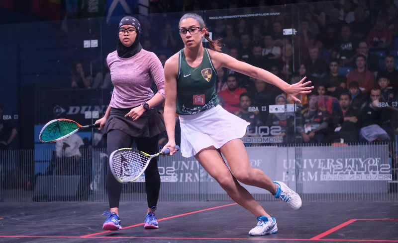 [Above image, courtesy of England Squash and Steve Cubbins, shows Egypt's Jana Shiha (right) and Malaysia's Aifa Azman contesting the British Junior Open GU19 final in January]