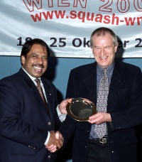 Harding (pictured above with former WSF President Jahangir Khan) said: "As a passionate lover of squash, the media role at the WSF was always a dream job and I am proud of the contribution I have made over the 23 plus years in trying to keep news of the sport in the forefront of the world's media.