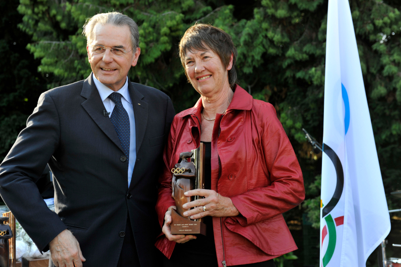Simcock's work and contribution for women in sport was recognised by the International Olympic Committee in 2010 when she received the IOC Women in Sport Award (pictured below with then IOC President Jacques Rogge).