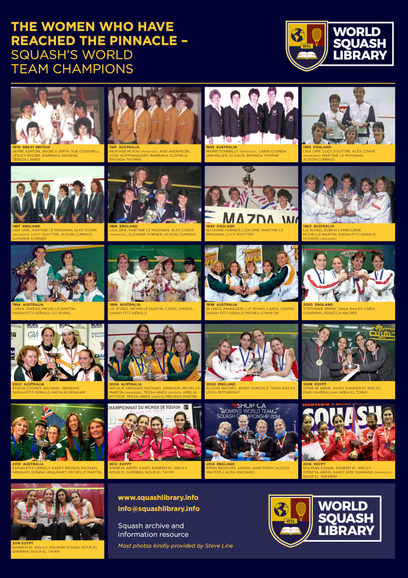 The 40-year history of the Women's World Team Squash Championships is highlighted in the latest initiative of the World Squash Library - encapsulated in a poster featuring photographs of all 21 winning teams.
