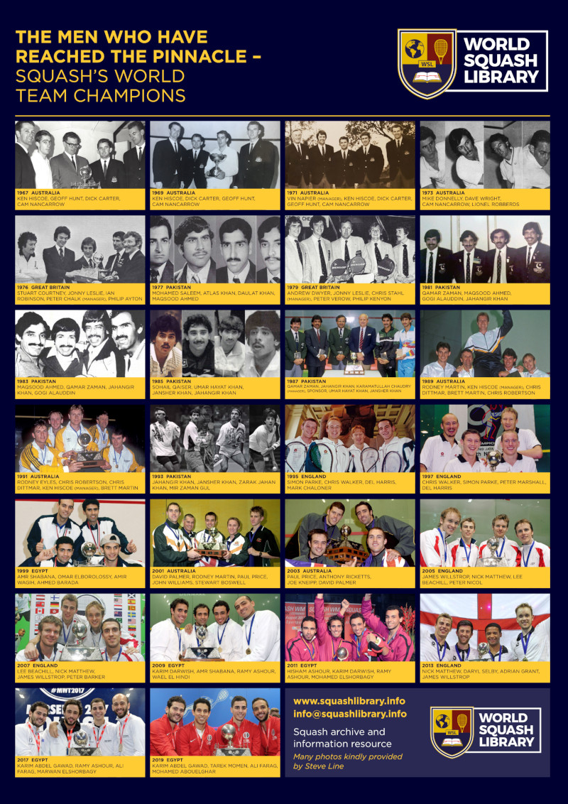 Highlighted by images of the 26 champion teams since 1967, a poster covering the full history of the Men's World Team Squash Championships is the latest production by the World Squash Library, which is launched today.