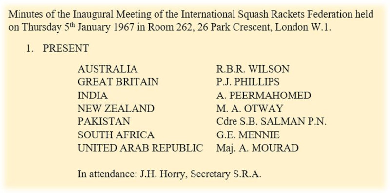 The full set of 50 AGM minutes of the World Squash Federation, from its formation in 1967 until 2020, can be found at www.squashlibrary.info/wsf-agm-minutes